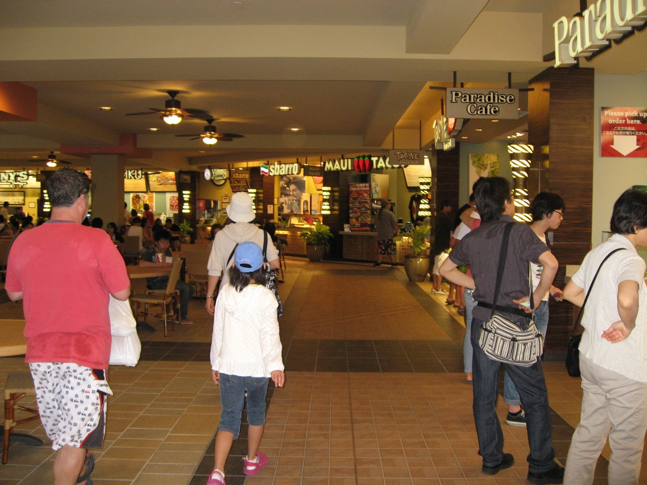 このショッピングセンターのおすすめは、広いフードコートです。特に食べ物を買わなくても、休憩によく使っています。テーブル席はたくさんあって、アラモアナよりずっときれいです。ただ、どのお店もお値段がやや高めです。量もやや少なく感じます。