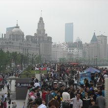 観光客は必ず行くと思われるエリア。中国が休みの日は、人ごみがです。ベンチに座ってぼーっと眺めているのも気持ちいいです。