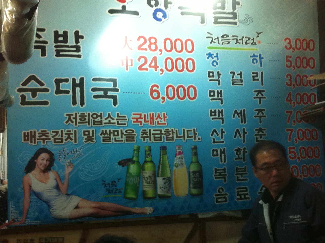 2人でチョッパル(小)と焼酎3本飲んで33000ウォン。