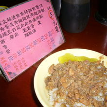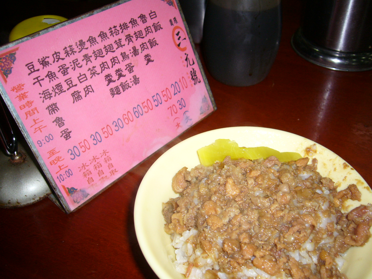 魯肉飯の小が20元!つゆだくで八角が効いていました。これと小菜をいくつか注文するのが普通らしいですけど、このあと迪化街や寧夏路夜市にくりだす方は、食べすぎないようにしましょう。