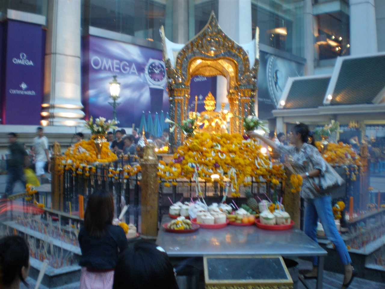 「プラマー」を祀った祠がある。あらゆる願いを叶えてくれるといわれ、参拝者が後を絶たない。夕方訪れると大勢の人々がお供えをして熱心にお祈りしていた。お供えセットを買って見よう見まねでお祈りした。やがてきらびやかな衣装を着たタイ舞踊が奉納され