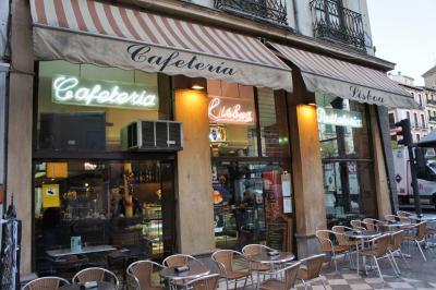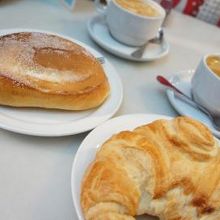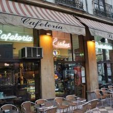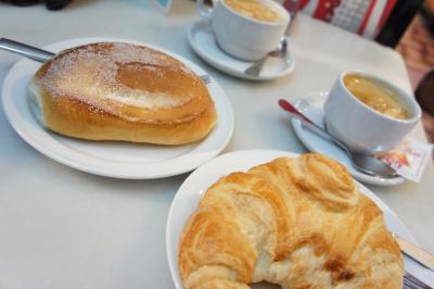 ホテルが朝食ナシのプランだったので、外で朝食を食べようと朝の8時にカフェを探しますが、オープンしているカフェの数が少なく、ようやくヌエバ広場でこのカフェに出会えました!周囲に開いているお店が少ないせいか、このカフェは朝から大人気!クロワッサンとカフェコンレーチェというシンプルな朝ごはんでしたが、普通においしかったです。