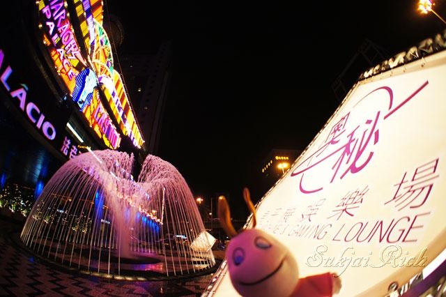 マカオの夜のお散歩。夜中になっても明るくて、治安もいいので安心です。ふらりとカジノやサウナやマッサージ屋さんに入ってもいいですね。もちろん食べ物屋さんもたくさん営業しています。昼間が暑い季節は特に夜の散歩が心地よいですね!