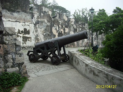 聖ポール天主堂跡からどんどん登って行きます。朝8時頃だったので、地元の方が太極拳などされてました。毎日ここまで急な階段を上り降りするだけでも良い運動になりそう。そういえば皆さんスリムでした。小さい子供連れやお年寄りには少々階段がきついかもしれません。大砲の脇からはマカオの街が一望できました。