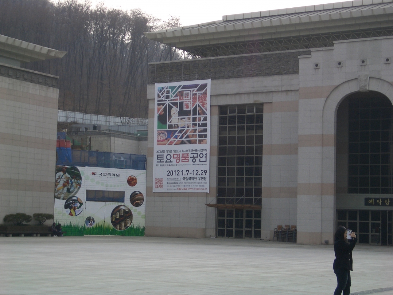 国立国学院の土曜名品公演へ行ってきました。地下鉄の南部ターミナル駅から歩くと15分以上かかり、まず芸術の殿堂(オペラ劇場)が見えてきますので総合案内所で公演が行われている国立国学院のウミョン堂を確認したほうが早く劇場に着くと思います。広大な敷地にいろいろな芸術関連の建物が建っています。また、案内所には日本語を話せる人もいました。当日券1万ウォンで公演1時間前より先着順となっていましたので時間に余裕をもって行ったところ中央の席で前から7列目でした。大韓航空の搭乗券とスカイパスを見せたところ20パーセント割引になりました。観客はご高齢の方、若い男女、親子や外国の方といろいろな方がいて結構な観客数でした。公演内容はH型で三道ソルチャング(日本の鼓を大きくしたような太鼓をばちを使って演奏する)ほか全7演目で90分程の公演でした。どの演目も素晴らしく感動的でした。演目内容はA型からI型の9種類とUNESCO無形文化遺産、名人名品と11種類に分かれているようです。日本語の立派なプログラムがたった1,000ウォンで購入できますので是非購入されることをお勧めします。帰りは無料のバスが運行していて最寄駅3つのみですが降ろしてくれます。私も南部バスターミナルまでバスで行き、帰途につきました。