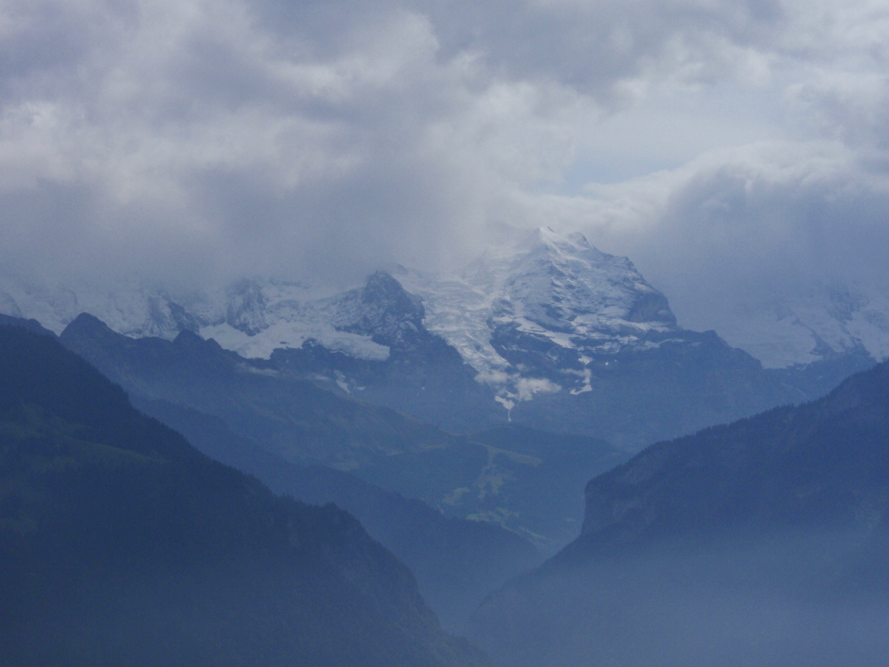 鉄道を利用してユングフラウヨッホまで行こうと駅に行ったところ、ちょうど発車したばかりで、次まで待つ時間がなかったので、ハルダークルム展望台までケーブルカーで登って、そこからユングフラウヨッホを眺めました。