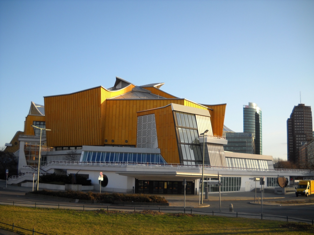しかたなくソニーセンターなどをぶらぶらした後、ホテルに帰ろうとたまたまバス停がフィルハーモニカが近いからと歩いていると、プログラム開演前30分で、玄関口には待ち合わせの人がわんさか。