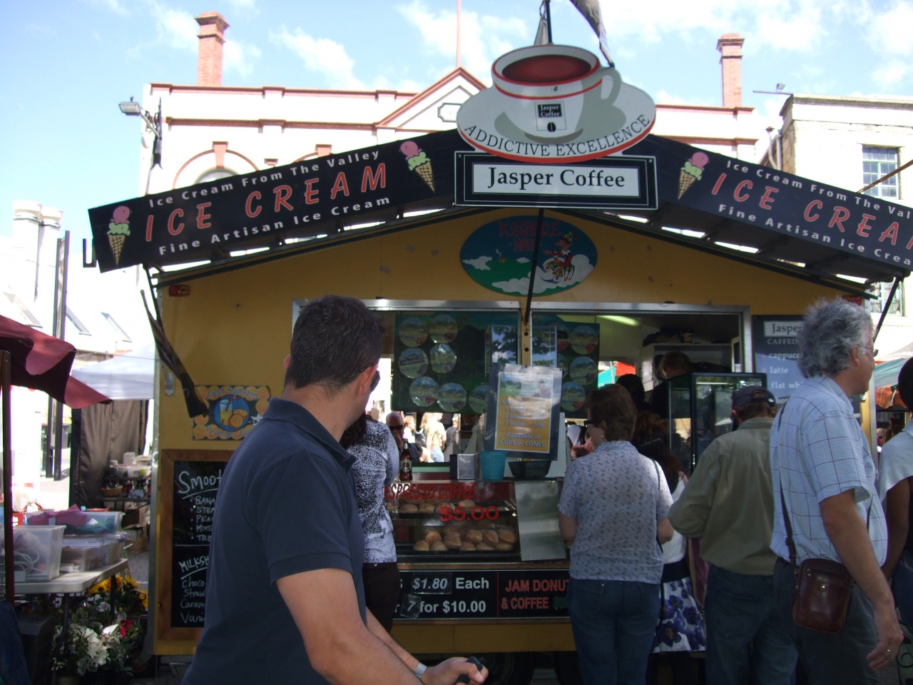 食べ物のお店も出ていて、手作りクッキーや、天ぷら、ホットドック、ハンバーガーなど色々あったので、どこかで買ってマーケット横の広場で食べると良いと思います。