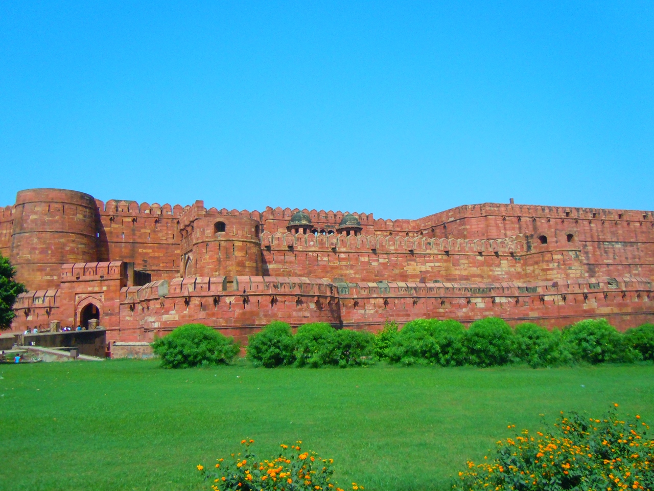 綺麗に整えられている庭園も見れて、遠目にタージマハルも眺めることができます。