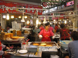 おなかをすかせていくことをお勧めします。見るものすべてがおいしそうであれもこれもついつい食べたくなるはず。試食も豪快にさせてくれますよ。おなじみの麻薬キンパや揚げチヂミもいいですが、野菜などのトッピング、お変わり自由なビビンパもかなりおいしそうです。