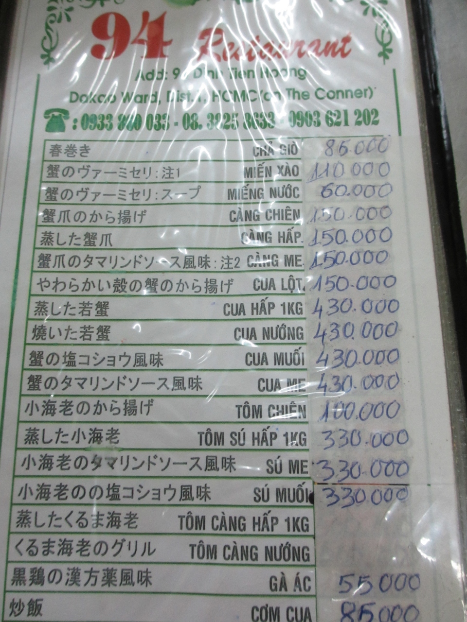 ベトナムでは住所を店名に入れているお店がよくあり、こちらも住所が94番地。
