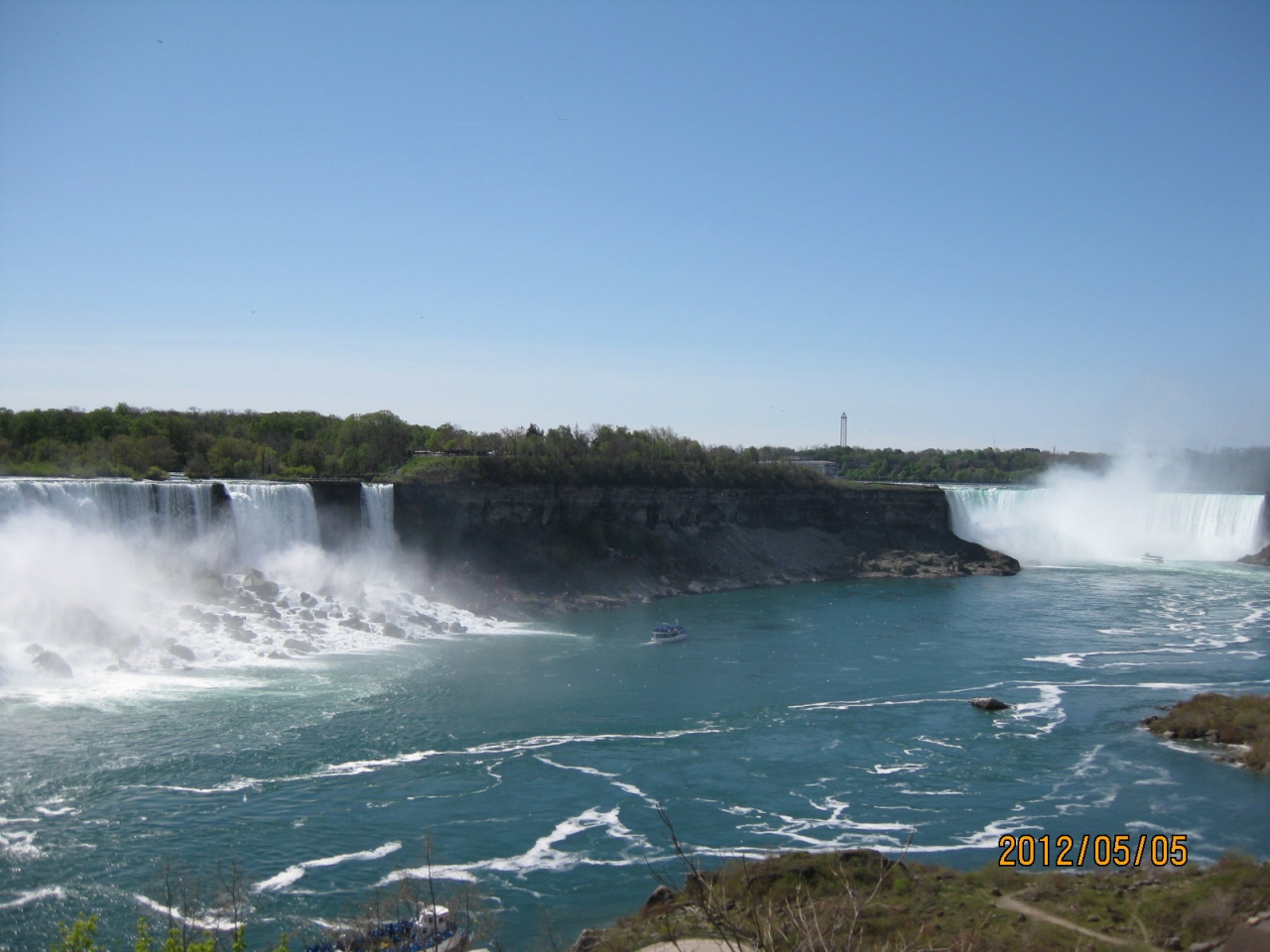 アメリカ滝、ブライダルベール滝それにカナダ滝を霧の乙女号で滝壺に行きました。