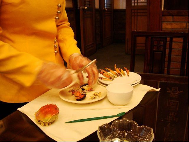 繁華街の通りから一本裏の通りにあります。ちょっとわかりにくいかもしれませんがちゃんと確認しながら行けば大丈夫だと思います。日本人のお客さんが多いようで単語レベルの日本語なら通じます。目玉は蟹の解体ショー(?)で、テーブルにお姉さんが付いて蟹をさばいてくれます。ここの蟹は身よりはみそを味わうもののようで、濃厚な味が楽しめます。また蟹みそ入り小籠包が美味しかったのでお薦めです。