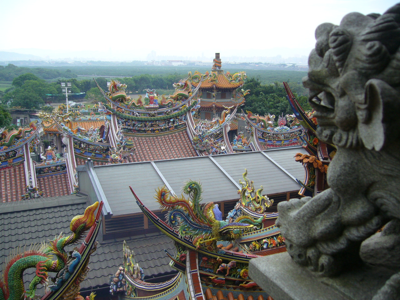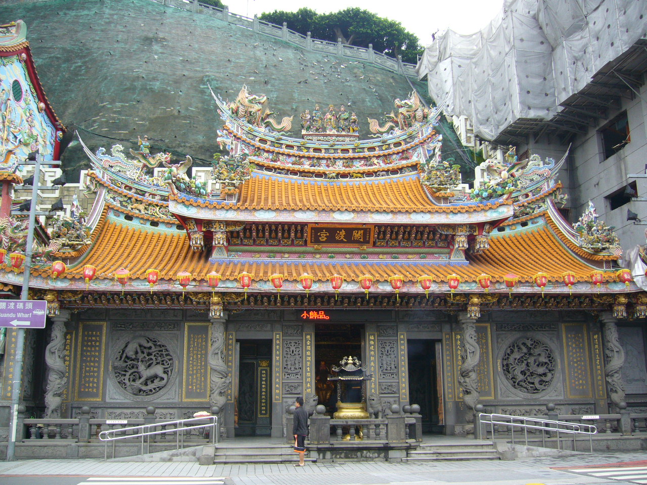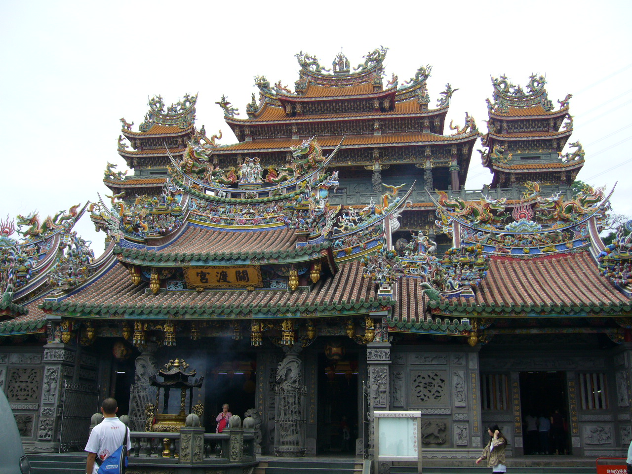 MRT關渡駅から、關渡自然公園ではなく「關渡宮を示す標識」に従います。しばらく歩いて商店街を抜けると、右手に派っ手~な建物が見えてきます。駅からミニバスもあるようです。