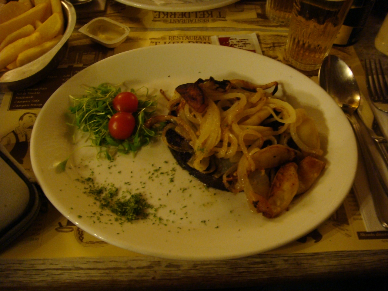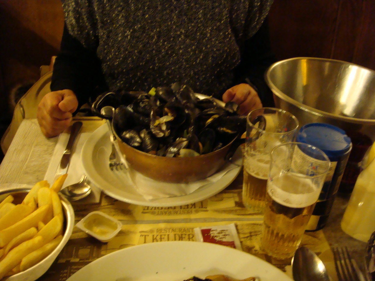 - ムール貝と田舎風の料理を注文 どちらも口に合う もちろんベルギービールも、ただし種類が多くてごく普通の種類にしてしまったのが残念