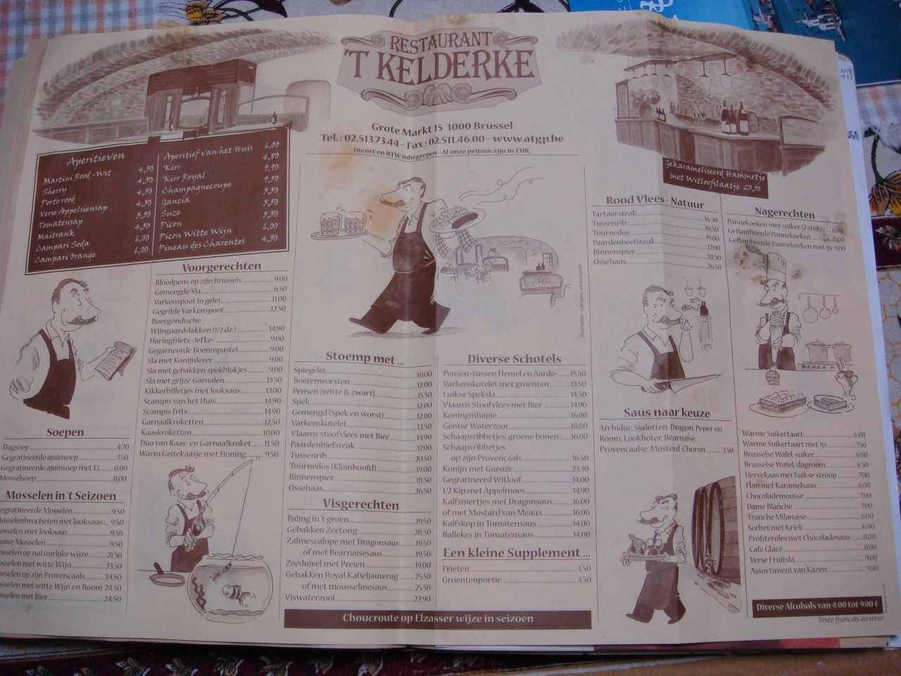 広くない入口から半地下へ下りてゆくとガラスのドアがあって左に折れるとレストランになっている。庶民的感覚の雰囲気で、ベルギーの人たちがワイワイガヤガヤとおしゃべりをしながら食事をしたり多種類のビールを楽しんでいた。