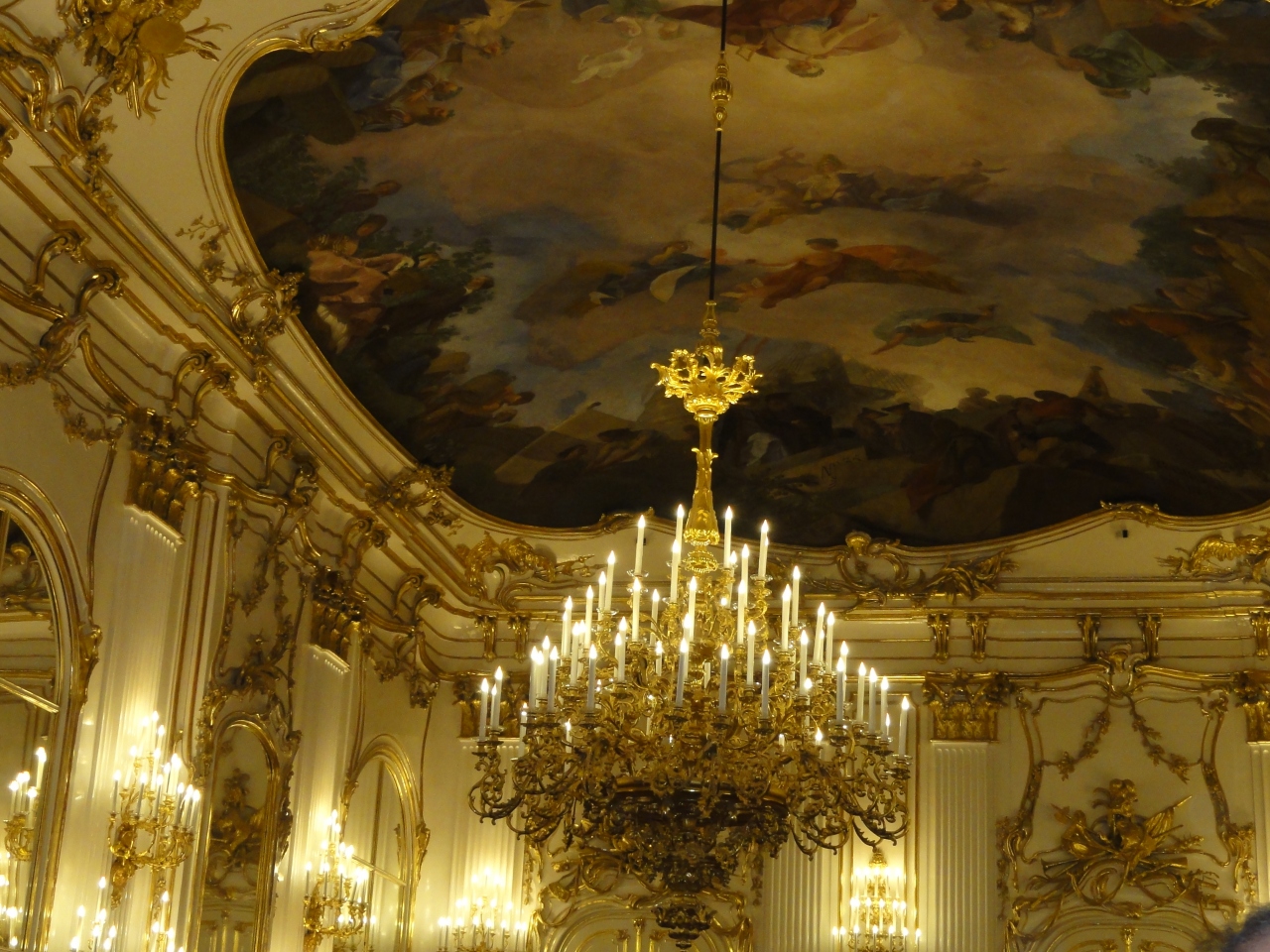 宮城内は基本昼間の見学は撮影禁止です。くれぐれも叱られることの無いように。庭園はあまりに広く全部見れなかったのが残念です。夜のコンサートはシャンデリア輝く宮城広間で行われ豪華の一語に尽きました。でも洋服は平服でも良かったので緊張することなく演奏に耳を傾けることが出来ました。私たちの馴染みの曲が沢山ありあっという間に時間が過ぎてしまいました。旅の疲れでうとうとするのではないかと心配していましたが曲に引き込まれ心配無用でした。