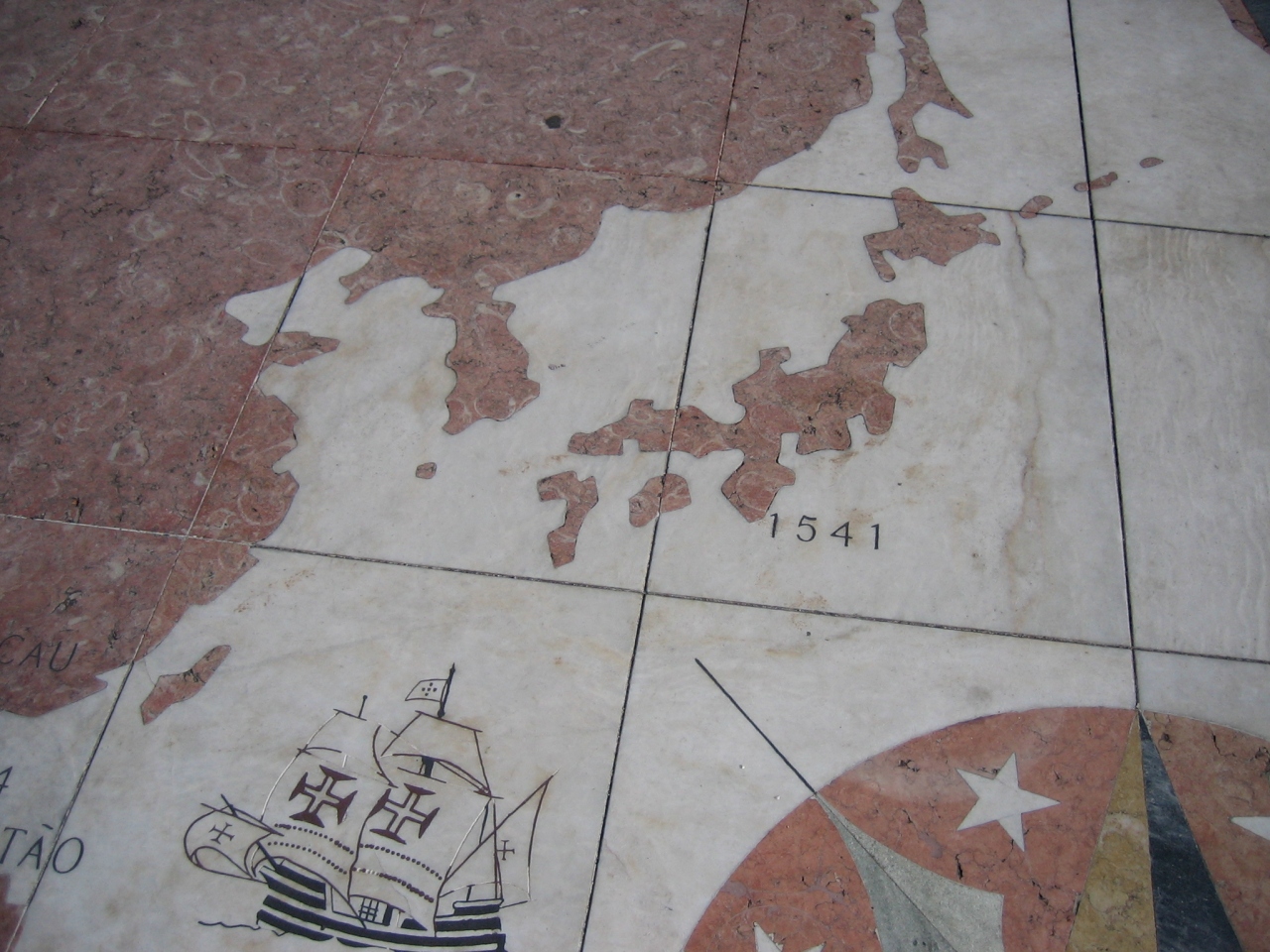 ジェロニモス修道院やべレンの塔と同じ地域にあるので、セットで訪問できます。天気が良ければ、青い空に白いモニュメントが映えてとても美しいです。手前の石畳の広場には世界地図が書いてあって、日本も1541年に発見されたことが記載してあります。