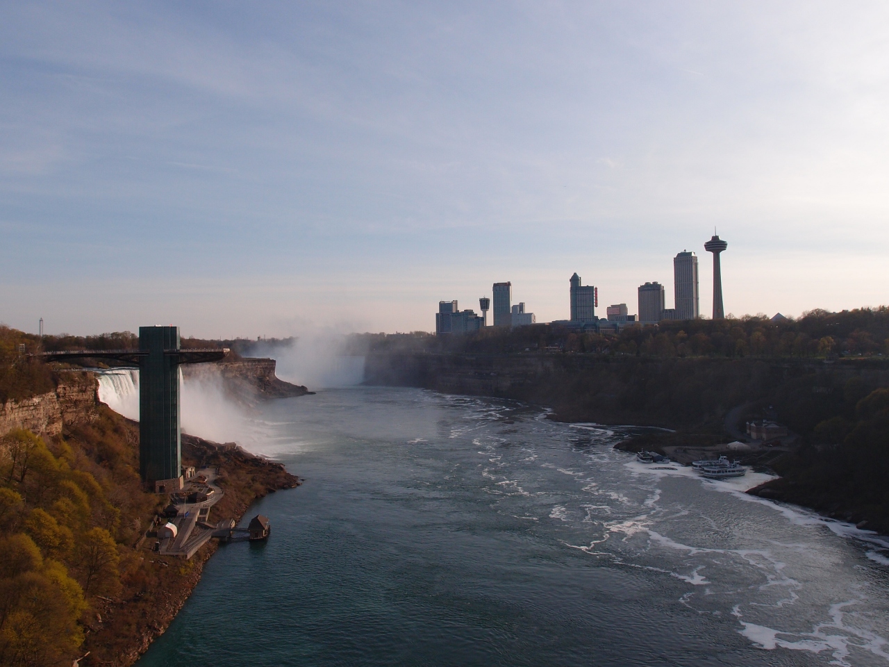初めてのナイアガラ観光でしたが、橋を渡るにつれて、少しづつナイアガラの滝が見えてきて、途中途中で写真を撮りながら歩きました。タクシーで渡るよりもずっと良かったと思います。
