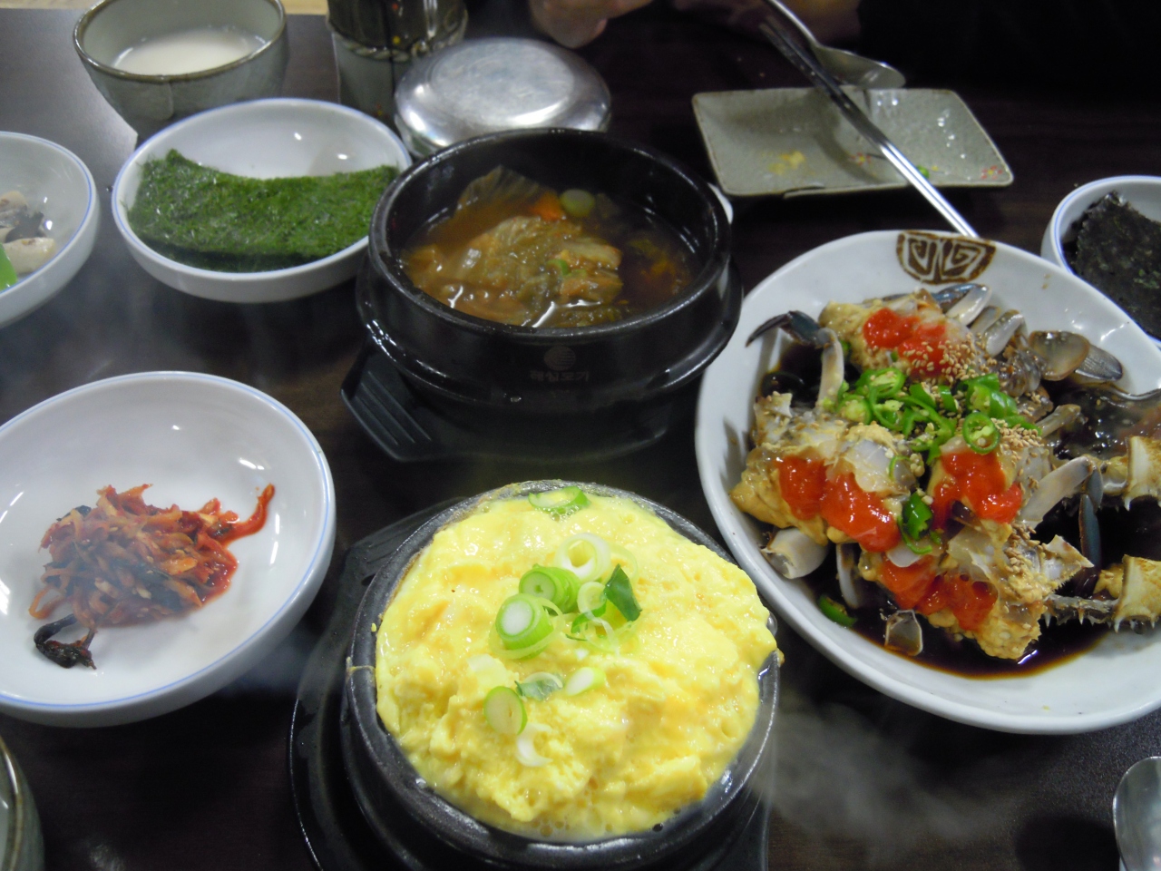 メニューはケジャン定食のみ。飲み物だけ頼むとあとは料理が次々に出てきます。辛くなく濃い味が絶妙、ご飯にもよく合うし、マッコリも進みます。ケジャンの専門店は何軒か行きましたがここが1番お気に入り。夜7時以降は込み合います。予約が必須です。