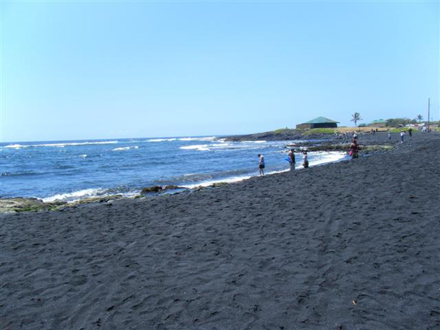 運が良いとウミガメの甲羅干しが見れる黒砂が美しい海岸