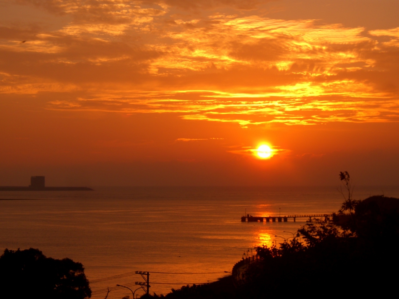 運良く雲に隠れることなく海に沈みました。ウットリ。