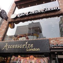 車は南浦洞方面から一車線で一方通行、バイクも多いので気を付けた方がいいところです。アリラン通り入り口にあるCafeで一休みしました。