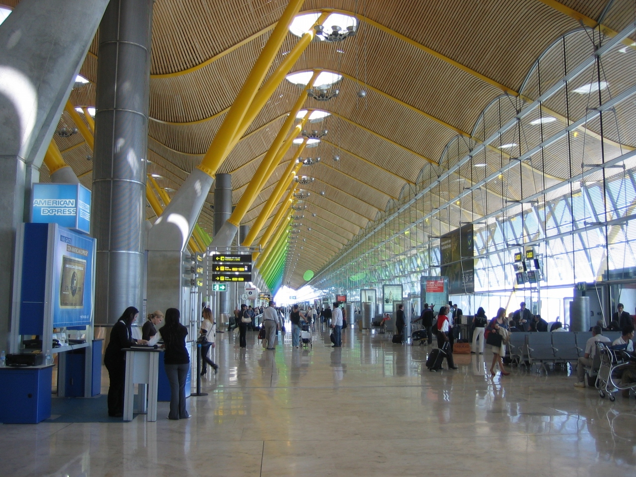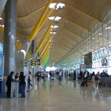 黄色が鮮やかな広くてきれいな空港です。イベリア航空の拠点で、ここからカサブランカへ、カサブランカから戻ってアルゼンチンのブエノスアイレスへとイベリア航空を利用しました。市内には、ターミナル2からAeropuerto(アエロプエルト)駅が直結しています。