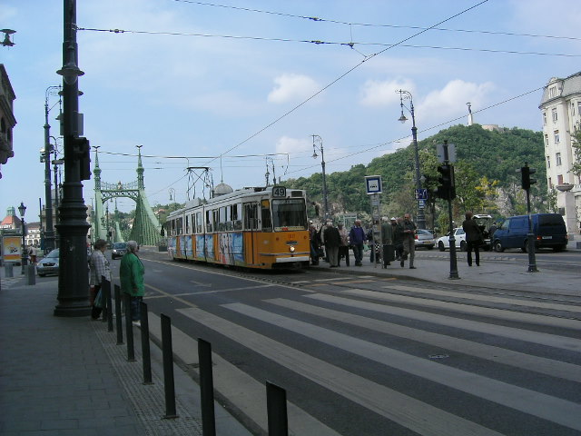 市場の前を横切る道路にトラムが走っていてそのまま自由橋を渡って