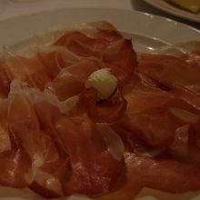 名物のパルミジャーノやクラテッロをぜひ。生ハムは揚げたパスタが添えられて出てきます。手打ちのパスタも美味。雰囲気のある内装も素敵で、カメリエーレのおじさんたちもいかにもプロフェッショナルといった感じです。人気店なので予約必須。