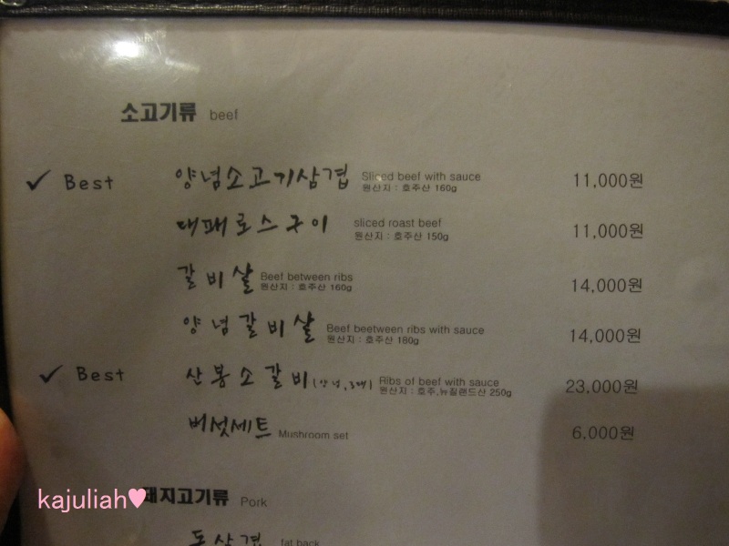 ヤンニョムソコギサムギョプ(1人前11000W)が、とにかく美味しいと聞いていたので、まず2人前注文。