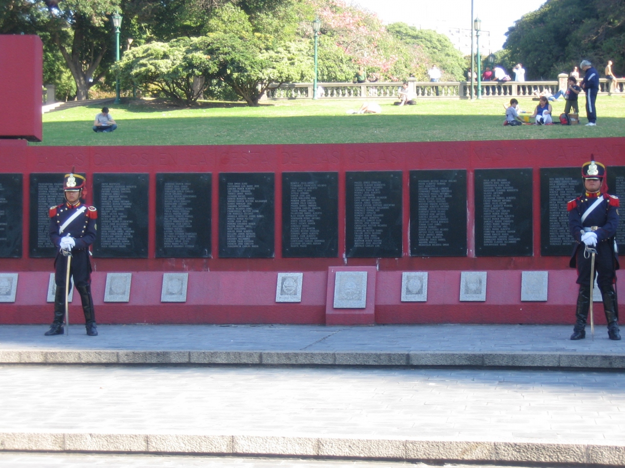 レティーロ駅の近くです。残念ながら、衛兵交代のタイミングは逃しましたが、フォークランド紛争の戦没者名簿の前に衛兵さんが二人微動だにせず立っておられました。広場の北東側に将軍にはサン・マルティン将軍の騎馬像もあります。緑や花も多く、天気が良ければゆっくり歩くと気持ちいいです。