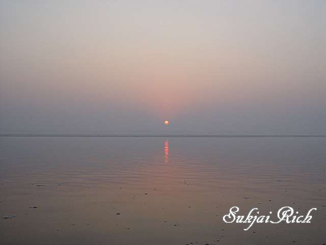 朝、夜明け前から船を頼み、川に出ました。そこで、ろうそくに灯をともし、川に流しました。そのうち写真のように太陽が昇ってきました。実に静謐なひと時でした。なんだかこの世に生を与えられて今まで生きてきて、今後も生きていくという人生を考えずにはおれない風景と時間の流れでしたね。