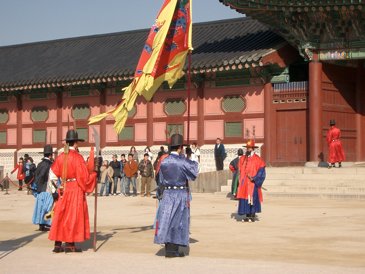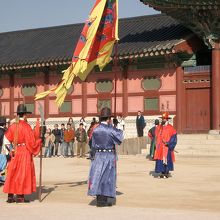 有名な景福宮の交代式です。壮観ですね!当時は雨が降ったときはどうしてたんでしょうか?傘をさしては無理だし・・・やはり、雨だと中止だったのかな?そんな素朴な疑問がわいてきました。交代式の後は、一緒に写真を撮ってもらえますよ。