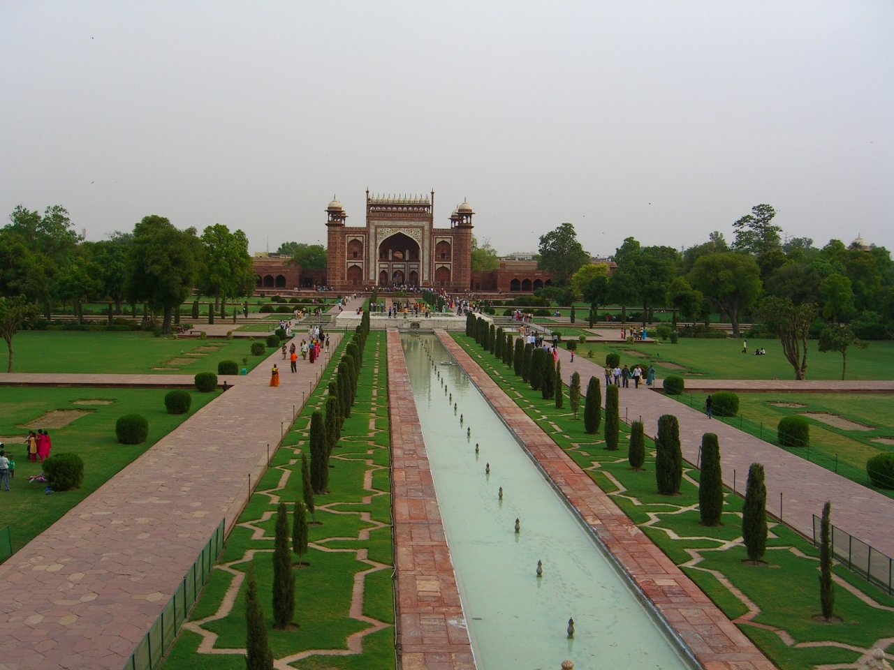 ツアーバスは駐車場にとめて入口まで15分ぐらい歩いたと思います。入場料は外国人は少し高く、高い入場券を持っている人は専用の入口から入ります。左右対称の総大理石の美しい建物が目を引きます。建物まではまた10分ぐらい歩きますが整備されていてたくさんのインド人や外国人がタージマハルの写真を撮っています。やはり圧巻の建物です。