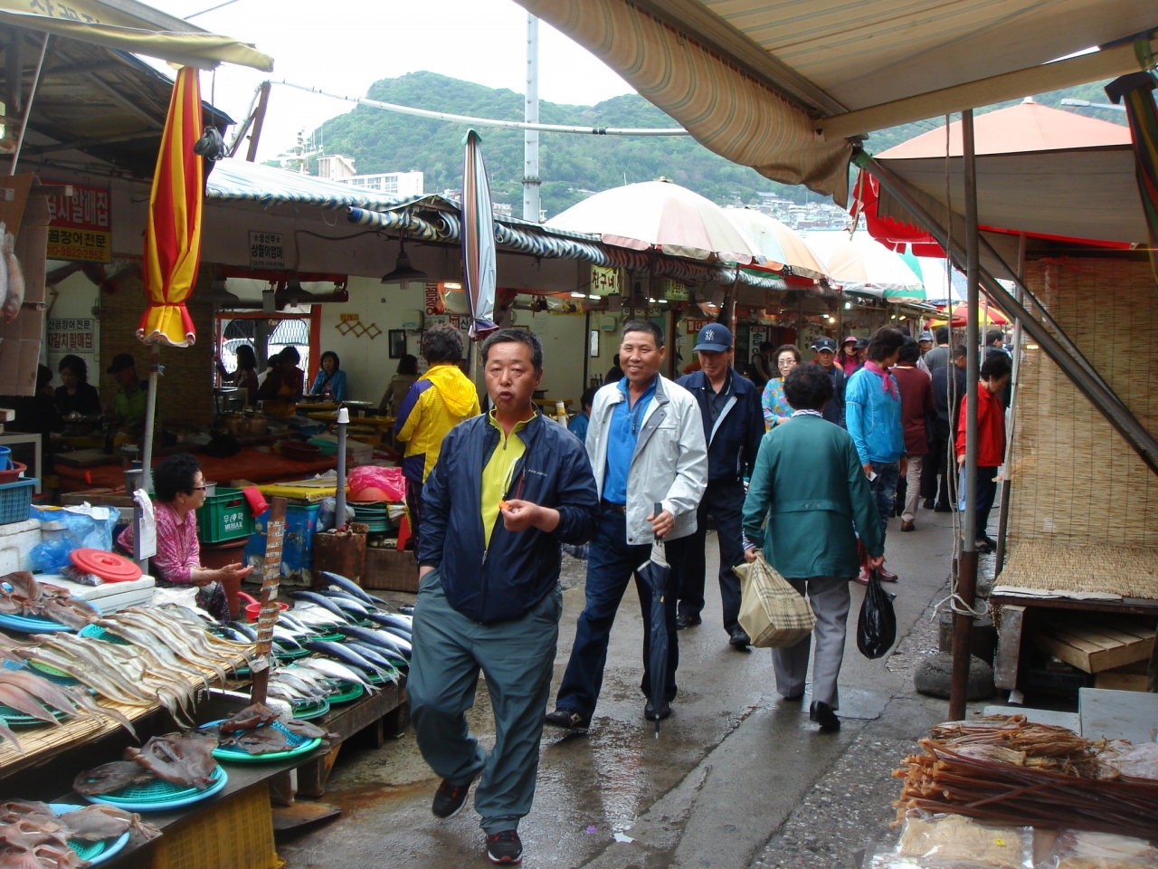 でも市場自体の見学は楽しかったです。バカでかい太刀魚とか、たらいから逃げ出そうとしては連れ戻されるタコとか、太いミミズのような不思議な海の生き物(食べたけど)とか、何か巨大な魚たちのヒモノのタワーとか、日本ではなかなか見れない色んな光景、楽しかったです。