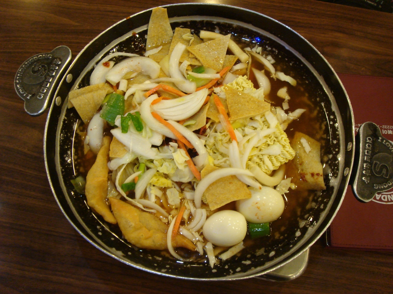 さて、人生初のトッポッキ鍋、写真は二人分。わくわく。味はまあ予想通り(でも思ったほどは辛くない)。野菜が少ない。炭水化物率高し^^;。たんぱく質はゆで卵とオデンのみ?(別の方の投稿でマンドゥとありましたが我々のにはなかったような…忘れられたのかしら?あるいはメニューが違う?)