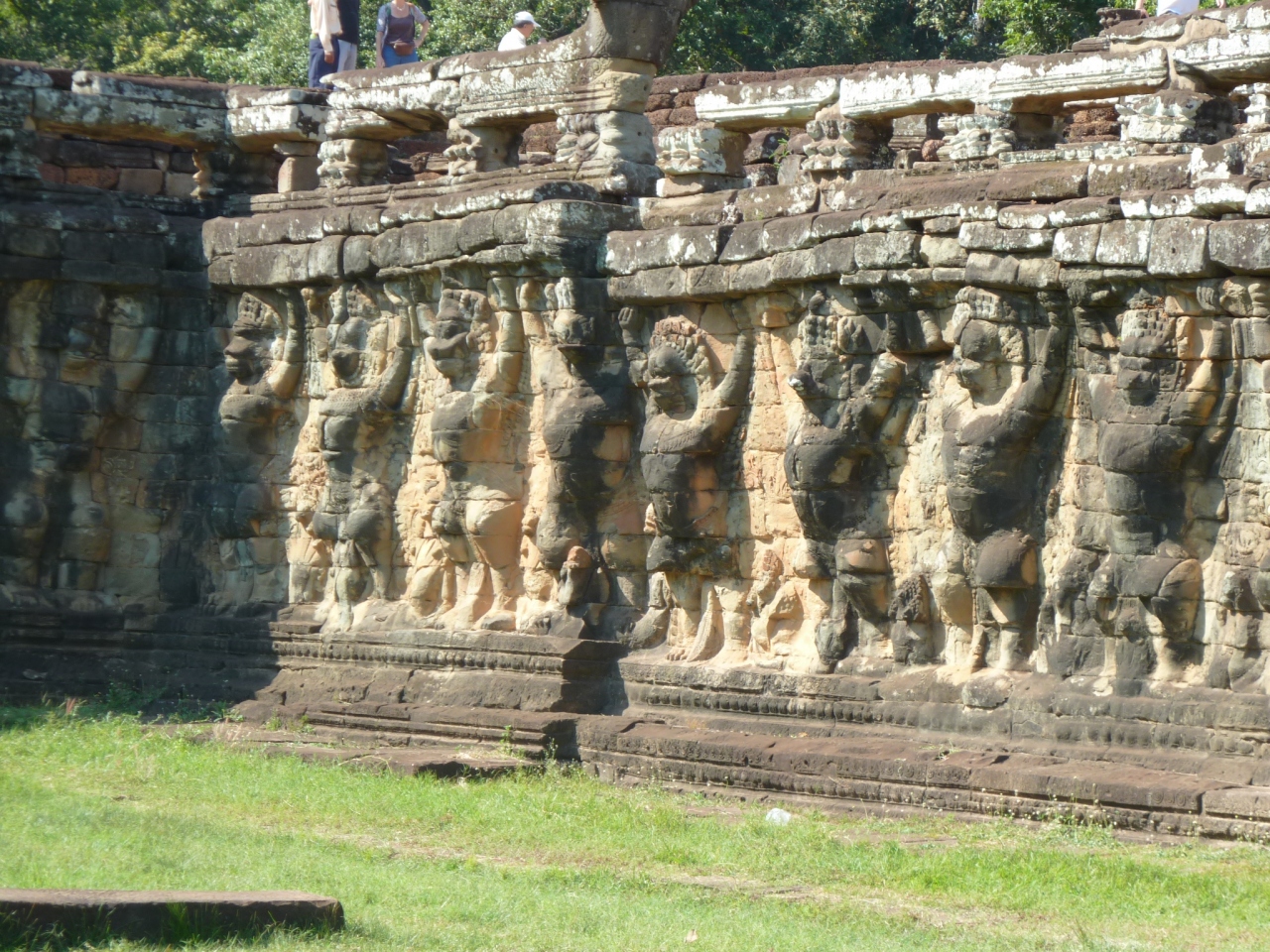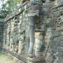 12世紀後半、ジャヤヴァルマン七世によって創られ、王族の閲兵などに使われた王宮前にあり高さ3m、長さは300m以上、東側壁にはその名のとおり象のレリーフが見られ、また中央ブロック側壁にはガルーダ像レリーフがならんでいる。300m以上の壁に象、ガルーダの彫刻が並んでいる光景は壮観です