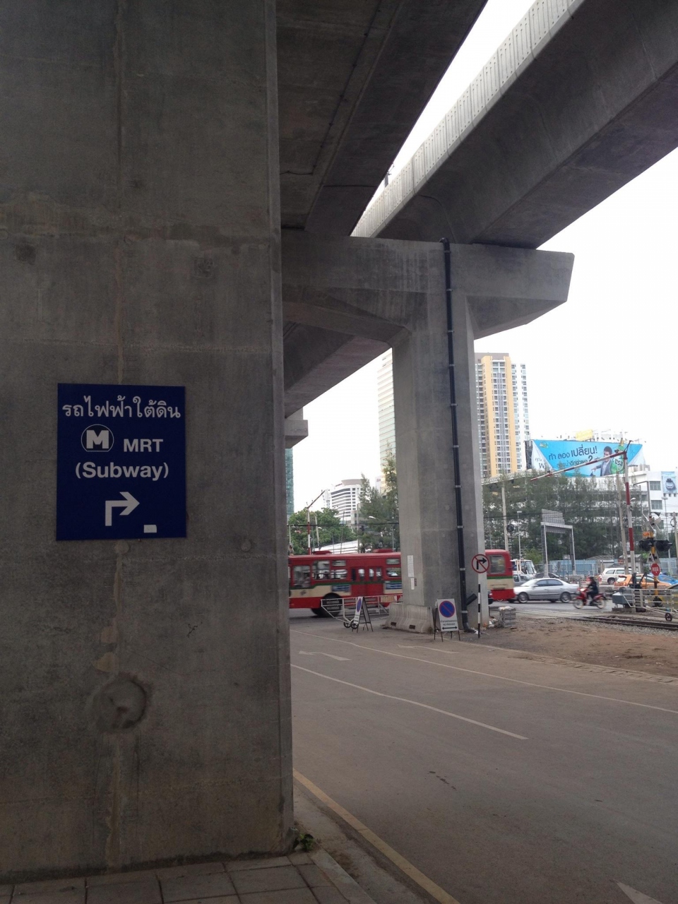 ただ、マッカサン駅~MRTペッチャブリ駅の乗換は非常に不便。一旦駅構内から出て、あまり状態がよろしくないアスファルトの道路をてくてく5分以上は歩く必要があります。