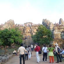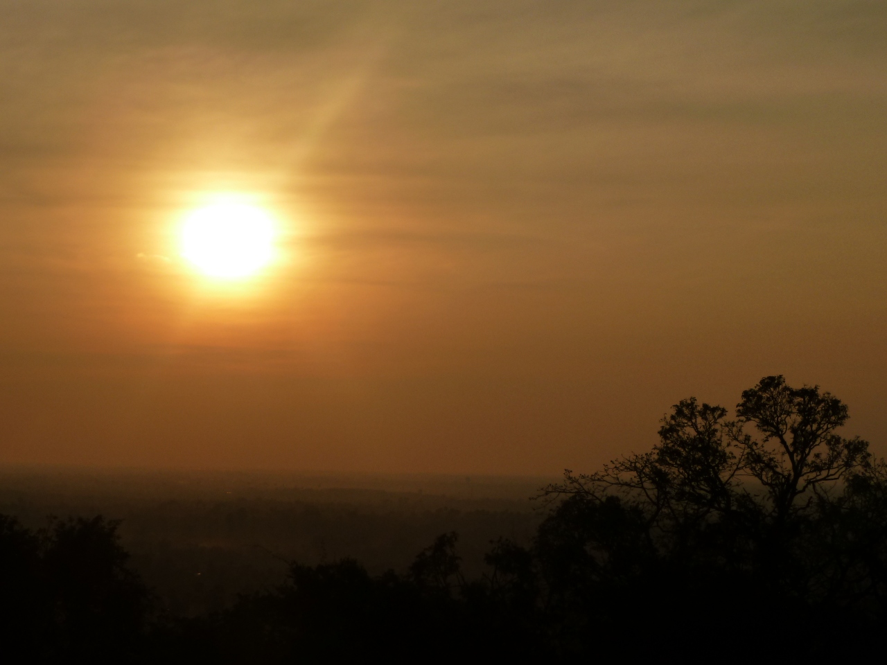 昨日はプレ・ループからの夕陽で、今日はここ。17時に入場できなくなるのにギリギリに到着。間に合った〜。山をぐるぐる上る感じで頂上へ15分くらい。一番人気の夕陽ポイントのようで人が無茶クチャ多い。横にいる中国人の女性がどんどん押してくるのでヤになって逃げた・・・どんどん人は増えてゆきます。わいわい夕陽鑑賞って感じ。いよいよsunsetです。わー、きれい☆どんどん沈みます。その間はさすがにみんな黙っています。陽が落ちてしまうとやはりパチパチと拍手が。万国共通なんですかね? 落日を上で見ると、その後の軽い下山が暗くなります。最後麓に着くときは結構真っ暗でガイドさんを探すの苦労しました。懐中電灯があればベターです。今日もお陰様で綺麗な夕陽を拝むことができました。感謝 手手
