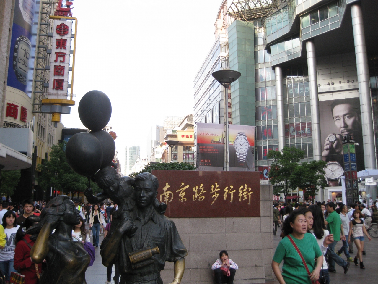 歩行者天国の大通りの中心を電気自動車が走ってたり、