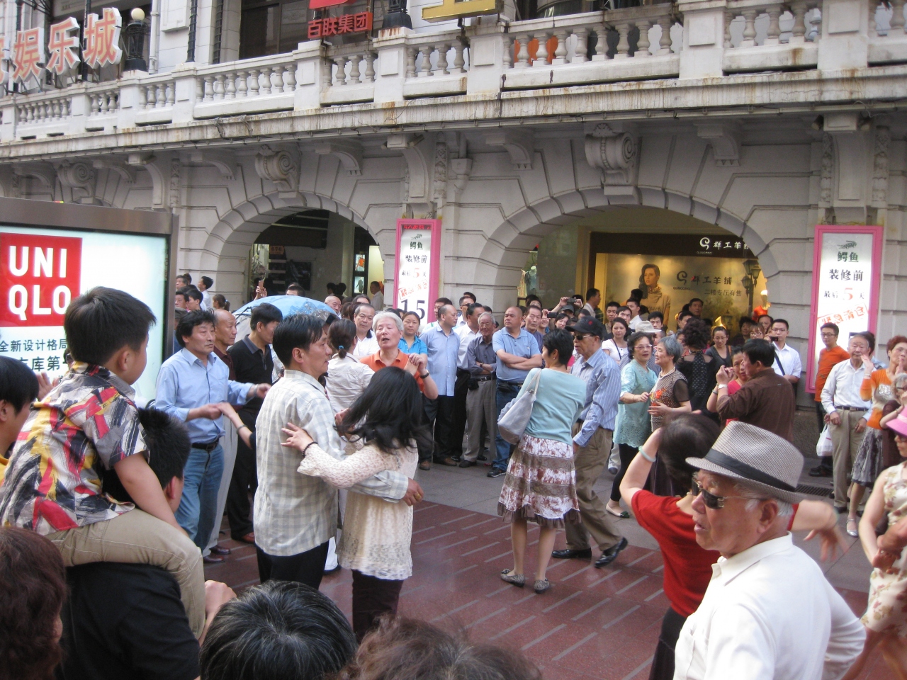建物のバルコニーから奏でられる音楽に合わせて踊ったり、