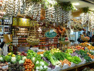 フィレンツェ中央市場に入っているお店の中で、ディスプレーがダントツで素晴らしいお店がここ「コンティ」!お野菜の陳列も、オリーブオイルやバルサミコ酢の陳列も計算されてディスプレーされている感じ。本当に美しいので必見です!売られている商品の数も多く、食材などのイタリア土産はここで完結できる位の品揃え。カタコトの英語で十分通じます。