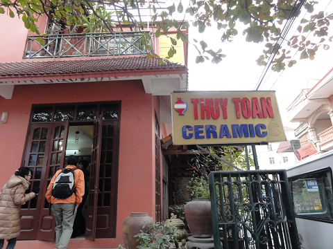 ツアーで案内されたお店です。1軒目のミンハイ・セラミックはバッチャン焼きと言えば定番の赤い花柄のものが多かったのですが、ここは青い色やひび割れても模様の物等、ちょっと雰囲気の違うものがありました。器も絵柄も現代的で、お洒落なものが多いように思えました。袋物雑貨やアクセサリー等も少し扱っていましたがこちらはイマイチ、買い物の合間にはお茶のサービスもありました。