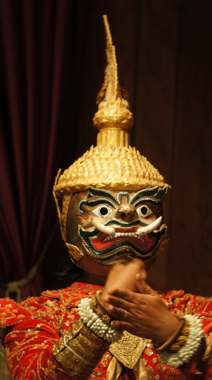 予約する時は席の位置を指定したほうが良いです。テーブルは3列の長テーブルなので真ん中の列の前の方が良いと思います。食事はセットメニューのみです。ホテルのレストランは非常に美味しいので味は間違いないと思います。飲み物は別料金ですがフランスワインがボトルで23ドルくらいからあります。食事が終わってからショーが始まりますのでゆっくりショーが楽しめます。我々が行った日は30人くらいのお客さんでしたので実に贅沢な雰囲気で観劇出来ました。団体観光客向けの大きなレストランだと12ドルで食事つきのところもあるようですが、雰囲気を重視されるならこのシアターはおススメです。終演後には表に昔の屋台が出て劇で使ったお面のミニチュアを売っていたりします。演出は良く考えられています。帰りのホテルのお足しの確保はお忘れなく。