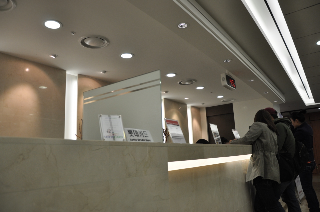 ロッテ免税店は3フロアかな?観光客が多いのでいつも混んでます。なので化粧品を買う時も疲れます。でもVIPカードで5%オフになるのでメジャーな化粧品は免税店で購入しています。免税店は品揃えが少ないのでいつも免税店で購入して足りないのを路面店で購入してます。VIPカードですがロッテのHPから印刷していくと無料で作成できますので個人で行かれる方は是非作ってください