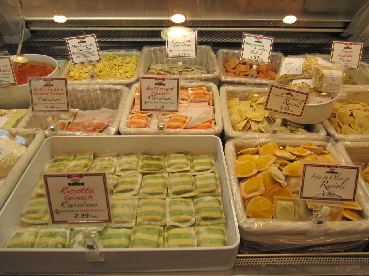 イチゴやリンゴなど、フルーツの盛り方が芸術的だったり、何種類ものラビオリがショーケースに入っていたり。