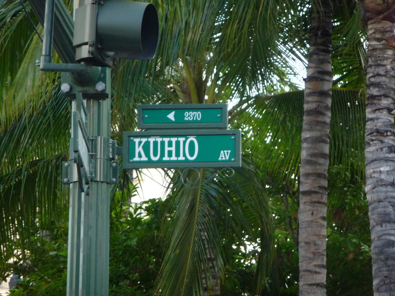 夜のカラカウア通りは人混みもひどく、信号も長いので、急いで移動したい時はクヒオ通りを利用します。カラカウア通りに比べると華やかさには欠けますが、割安なレストランや個性的なショップが結構あって、楽しめますよ。