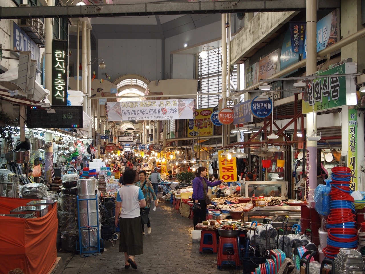 釜田市場は釜田駅前の右側に広がる市場です。