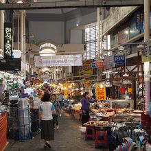 市場内(通り沿いの区画)には屋台がずらっと並び、